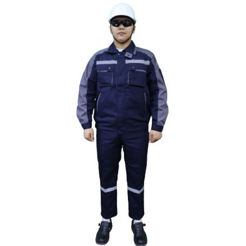 - Цвет: Основной цвет костюма – тёмно-серый с серыми акцентами, придающими одежде строгий и профессиональный вид. Эта цветовая схема также помогает скрыть небольшие загрязнения, сохраняя опрятный вид на протяжении всего рабочего дня.